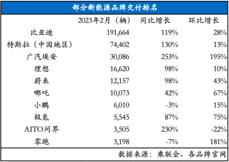 部分新能源品牌具體交付量如下:
