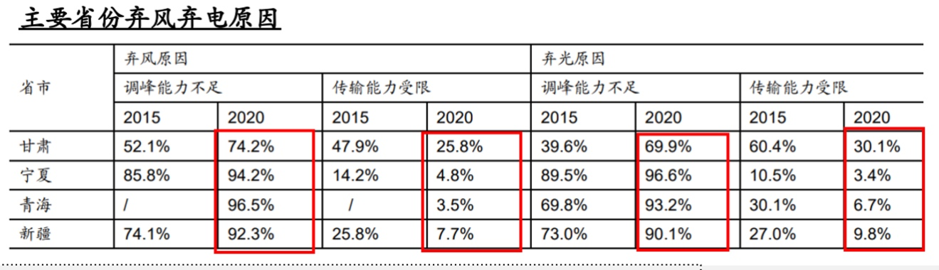 另一方面儲能可以解決西部地區(qū)棄風棄電問題。我國風光電資源最豐富的地區(qū)是西部,但是用電大戶都在東部,這就有一個資源與需求逆向分布的現(xiàn)象,所以過去為了保證“西電東送”的順利成功,國家大力建設(shè)了高壓輸電網(wǎng)絡(luò),如今“送”已經(jīng)不是困擾新能源消納的主要原因,調(diào)峰能力不足才是關(guān)鍵因素,而且隨著新能源裝機量的持續(xù)增長這個問題逐步加劇。