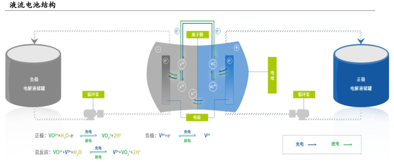 原理是通過正負極電解液中的活性物質(zhì)發(fā)生氧化還原反應(yīng)(電解液之間循環(huán))來儲存和釋放電能。